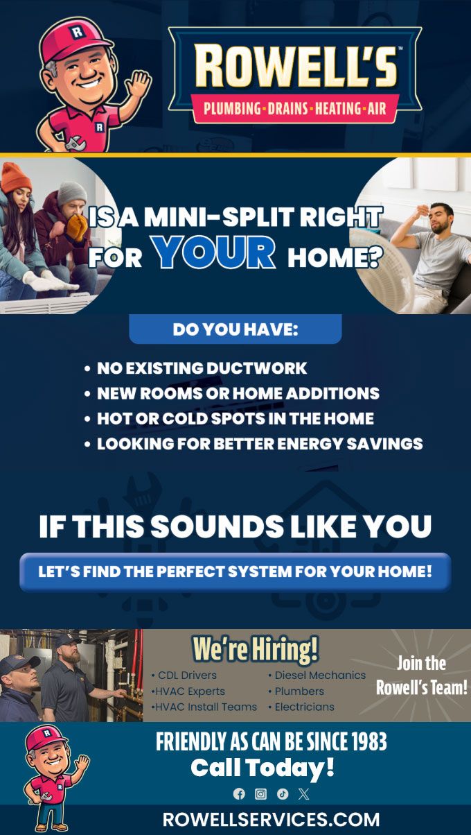 "Friendly As Can Be Since 1983!" When you need help with your plumbing, drains, heating, cooling or electrical in Meredith, you can always rely on Rowell's Services! Call us now or book online!