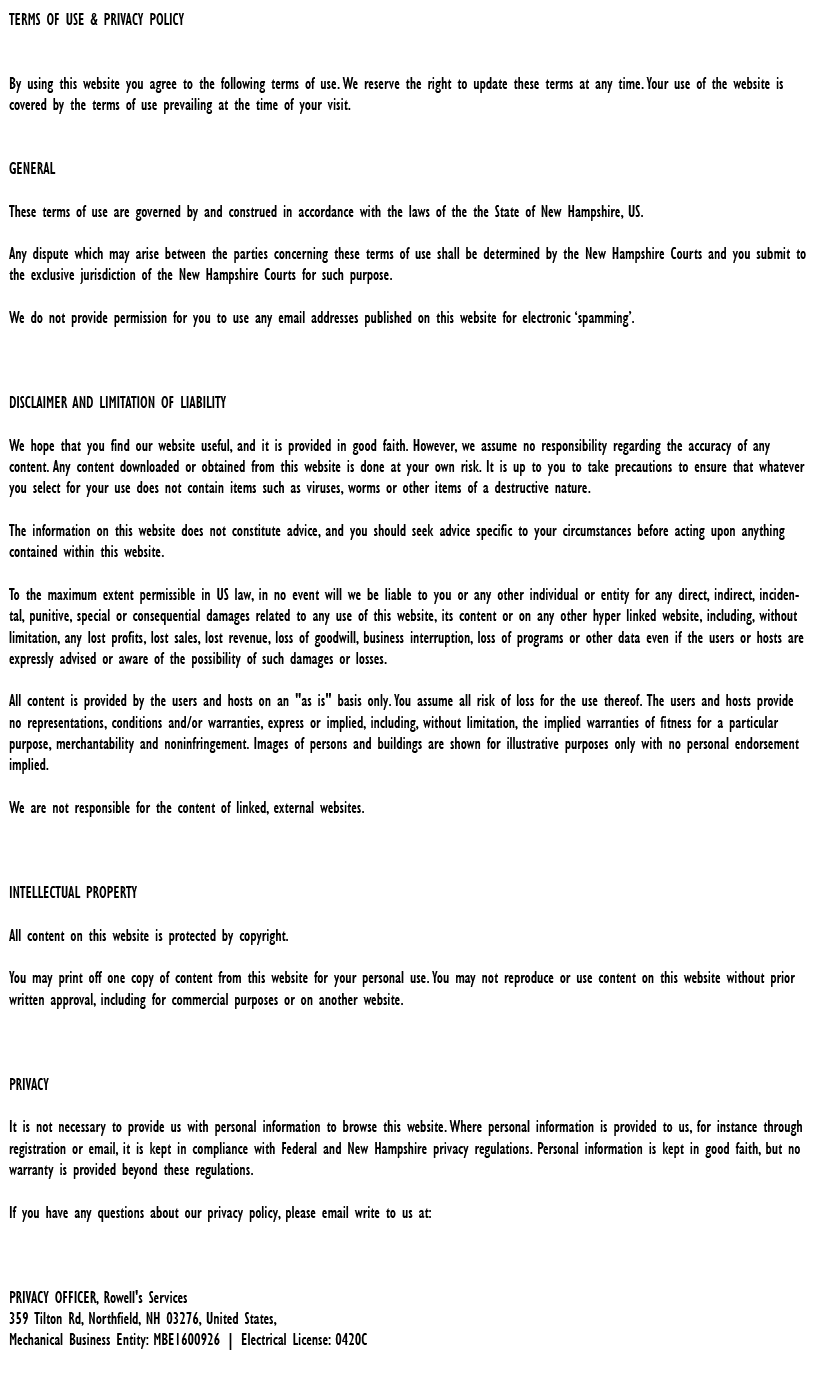 Rowell's Services is a second generation family business rooted in our Meredith community for over 40 years.
